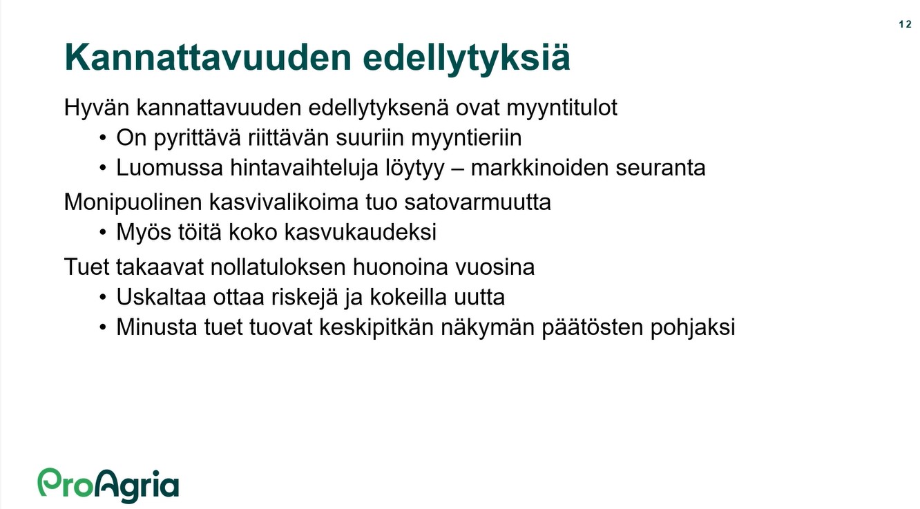 👉Tilan on saatava myyntituloja eli tuotettava markkinakelpoisia eriä ja pitää seurata markkinoiden kehitystä, erityisesti luomussa ja että myy oikeaan aikaan!